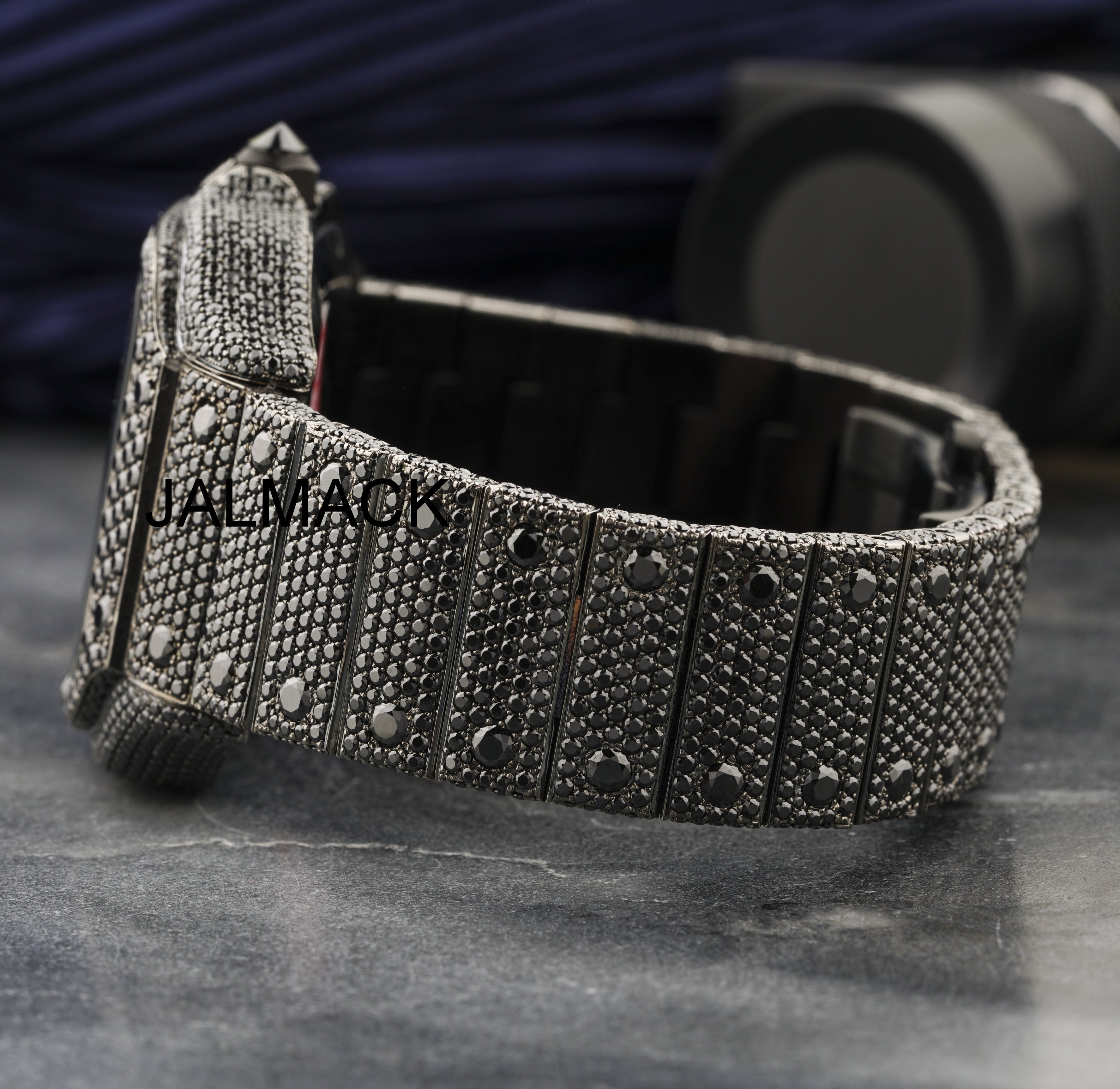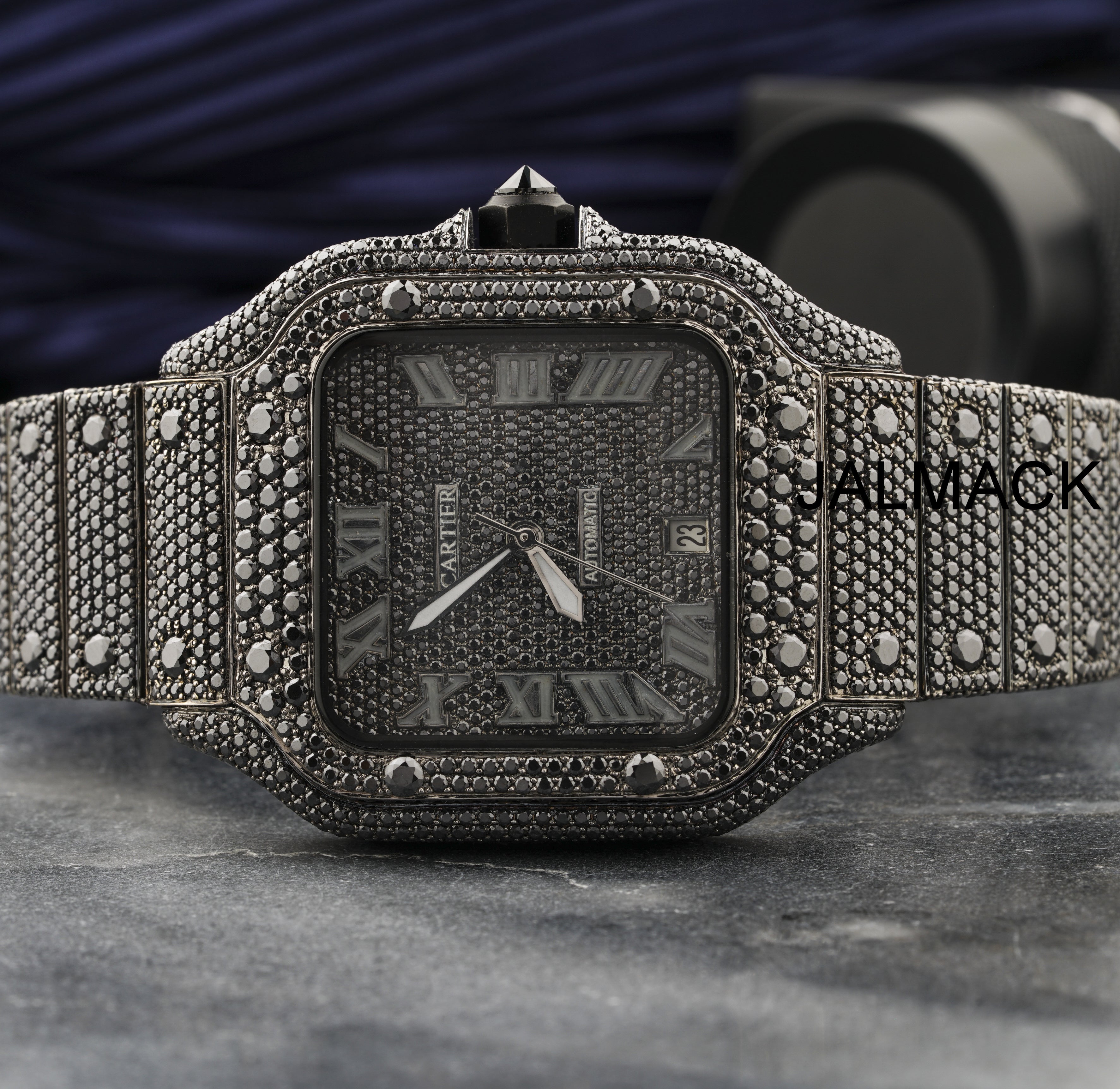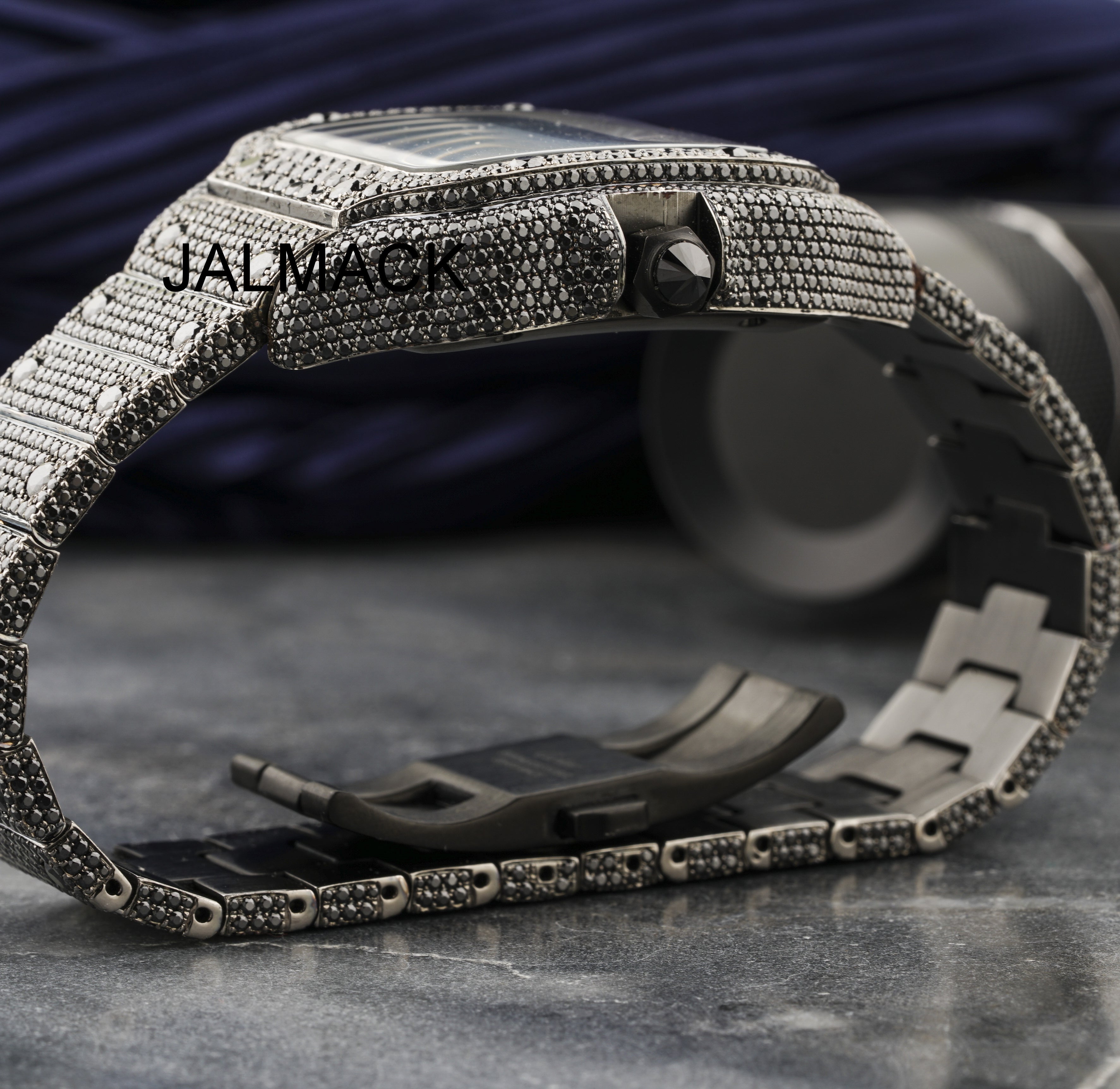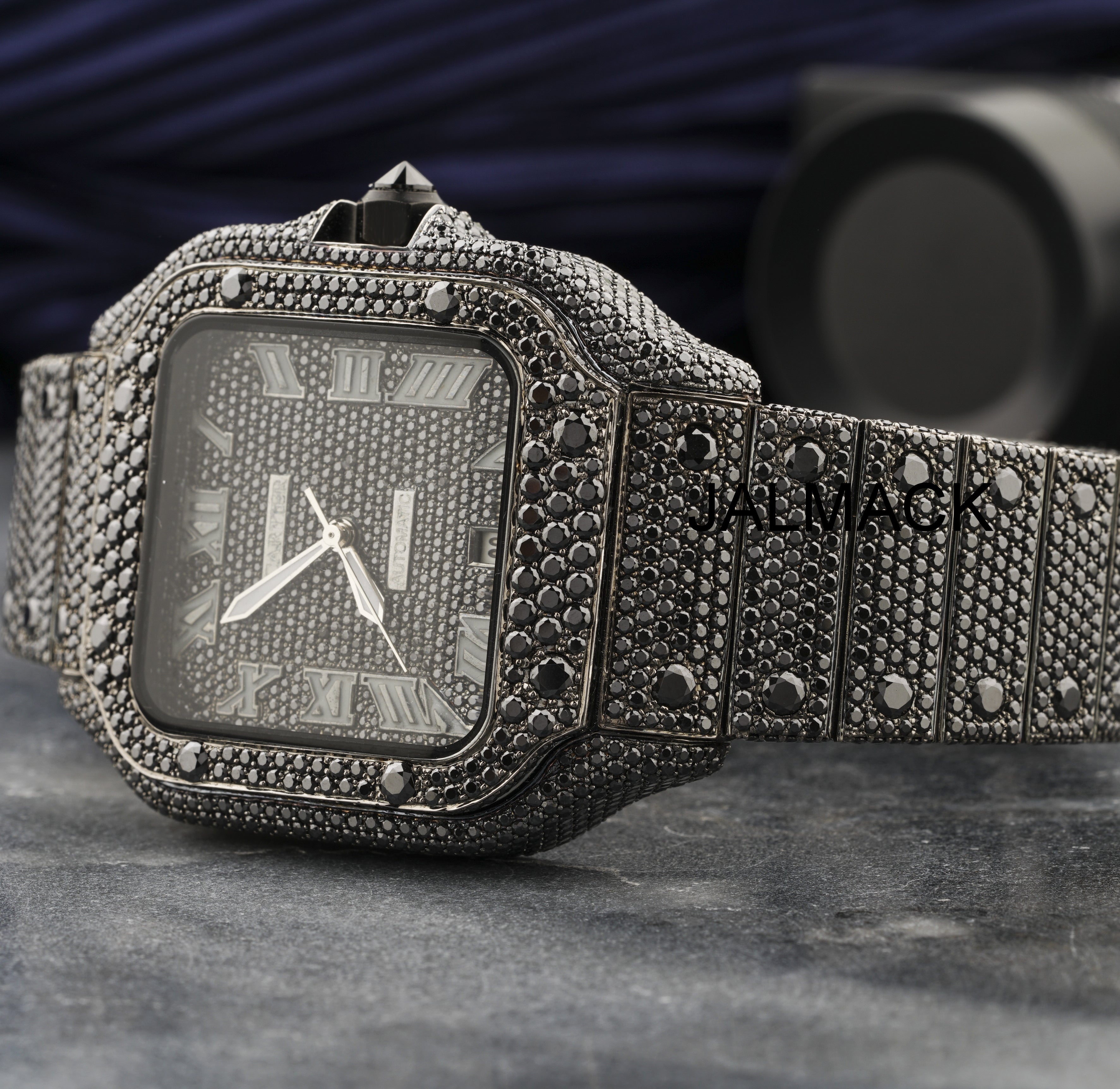 40MM Cartier Black Moissanite Fully Iced Out Watch, Customized Moissanite Studded Watch