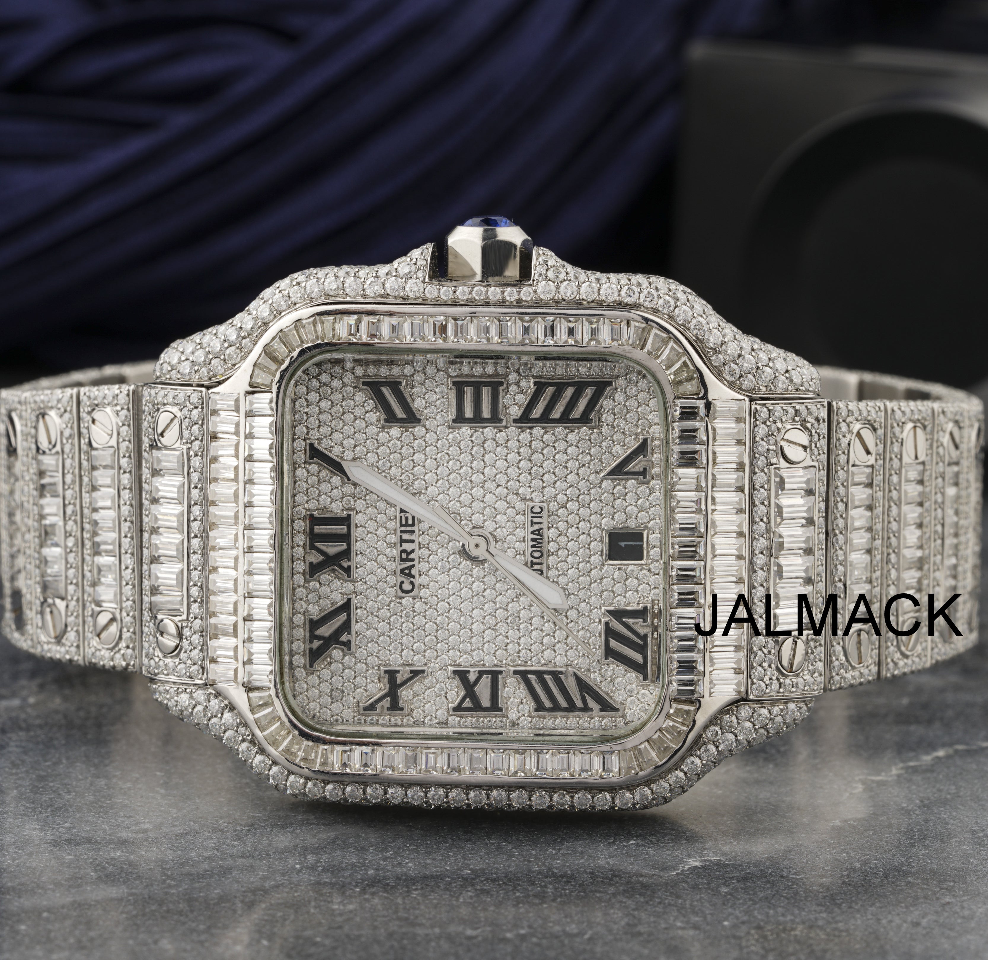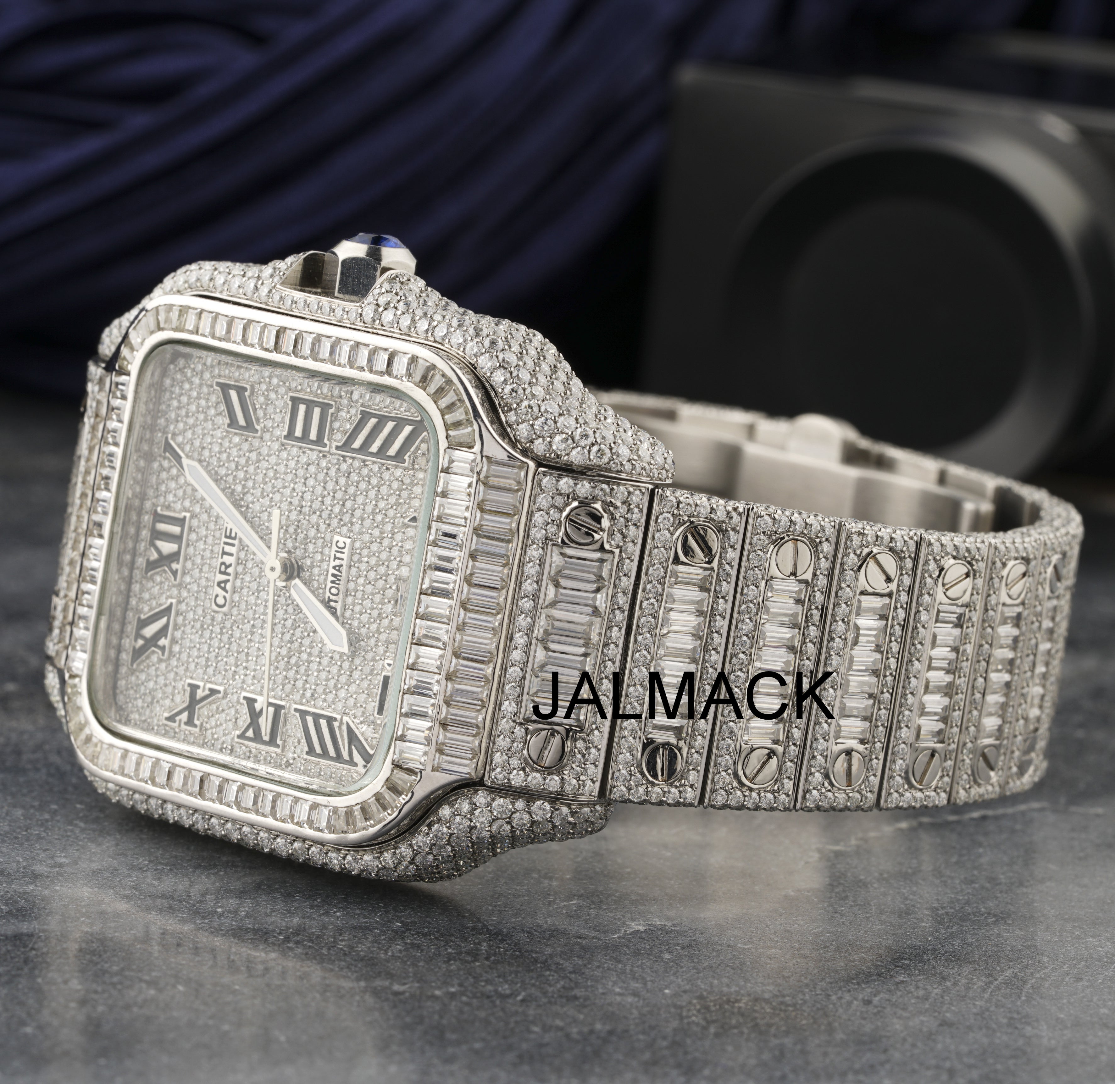 40MM Cartier Fully Iced Out Diamond Watch, Customized Moissanite Studded Watch