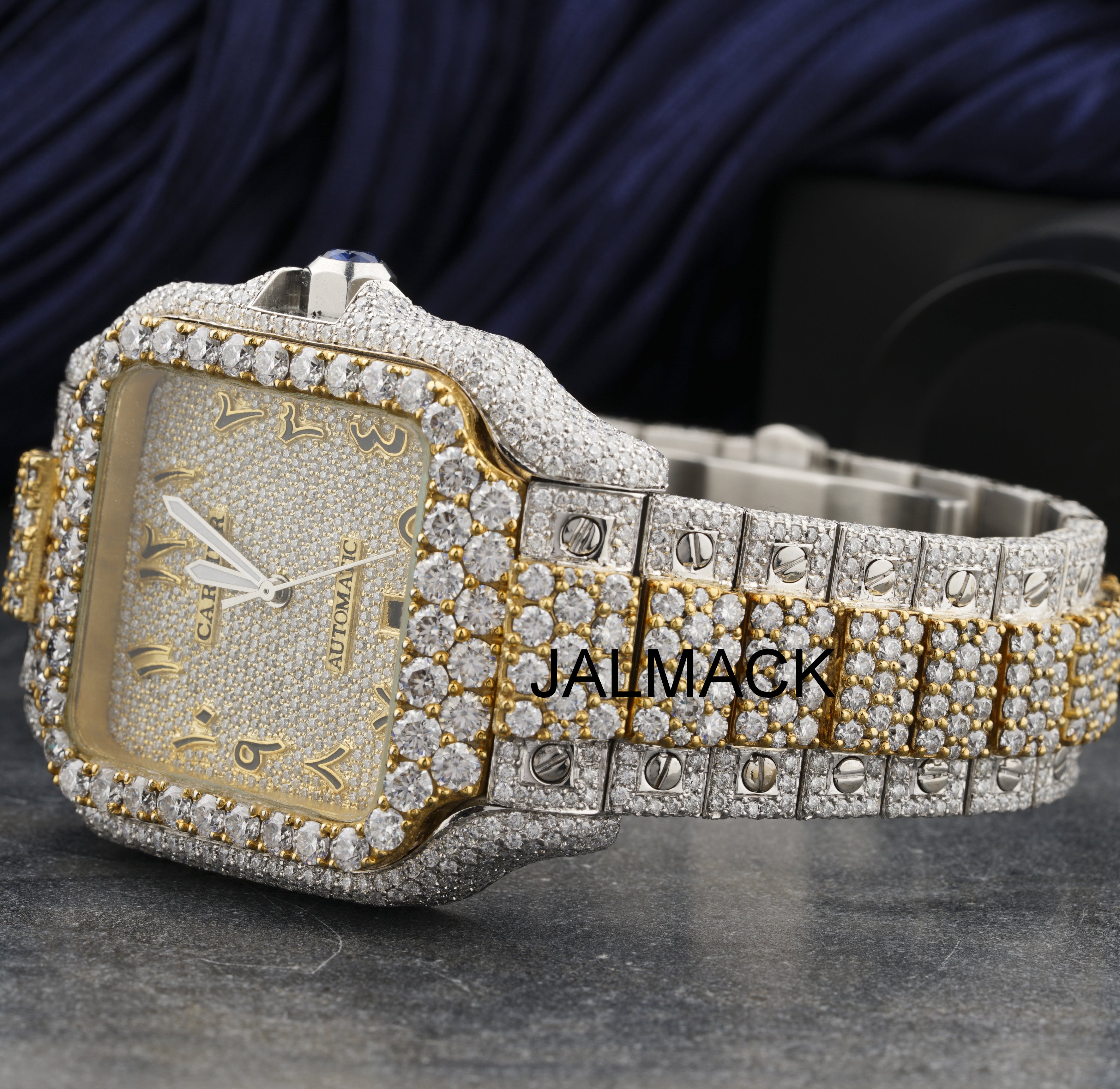 40MM Cartier Fully Iced Out Diamond Watch, Customized Moissanite Studded Watch