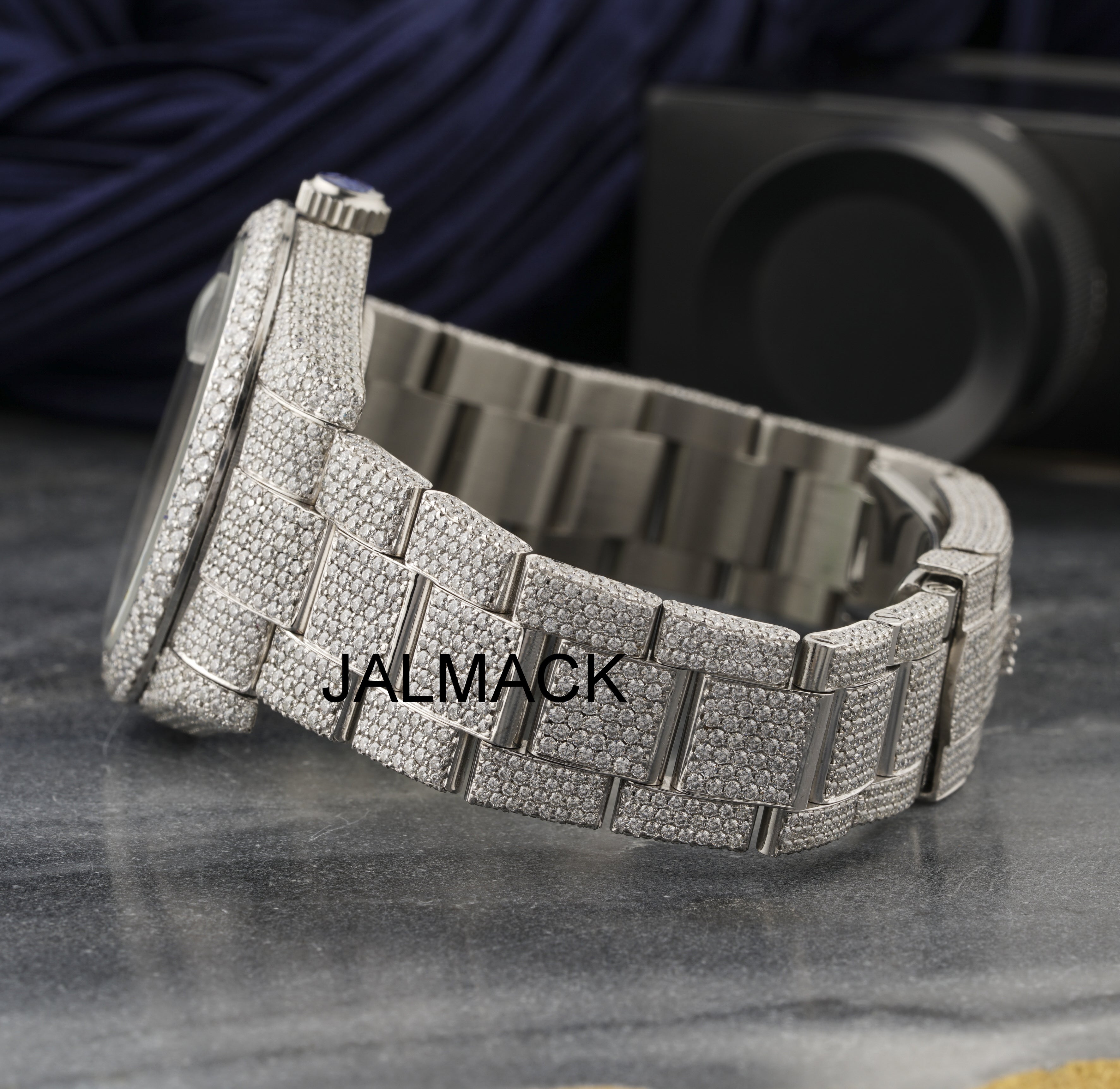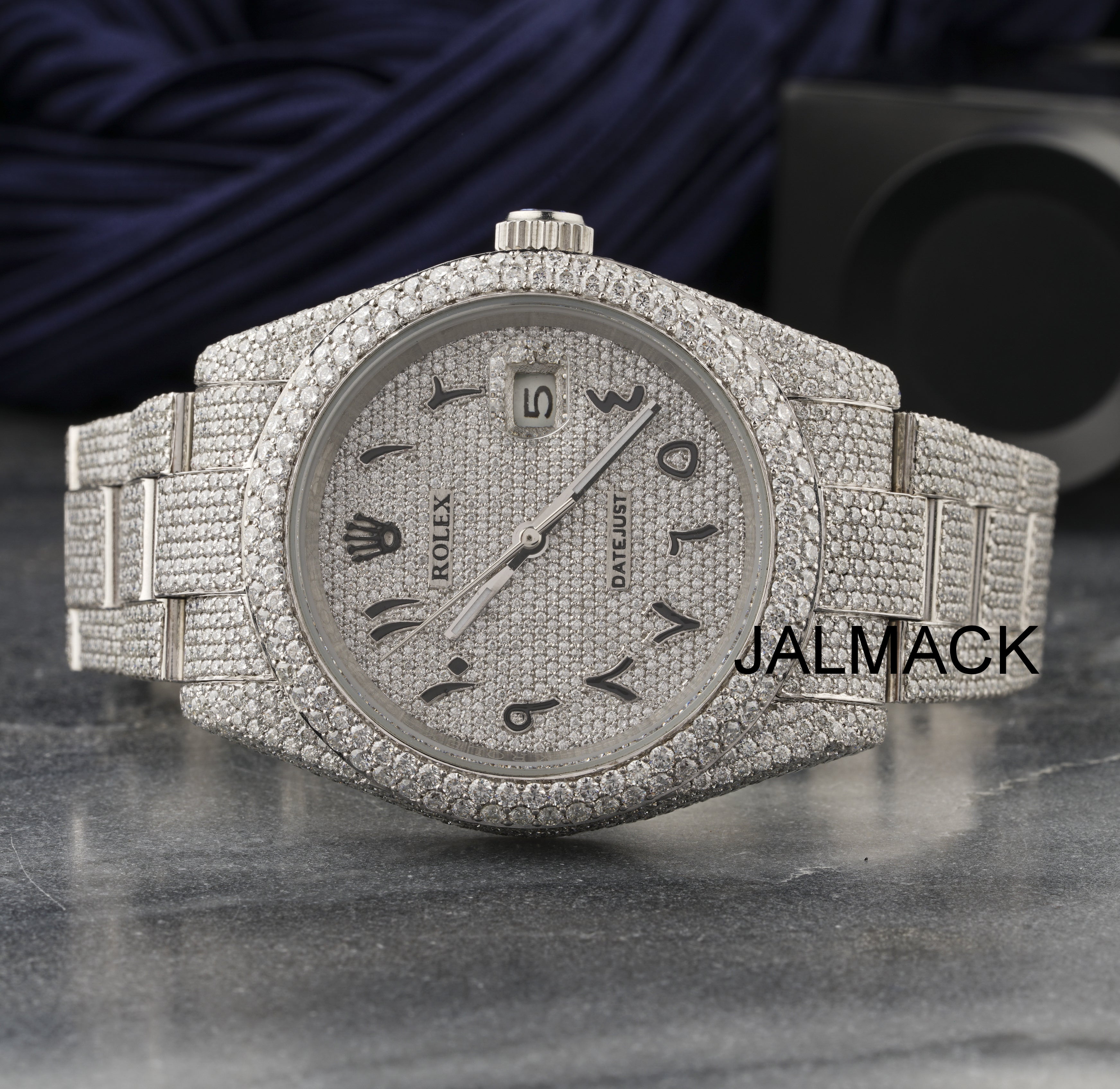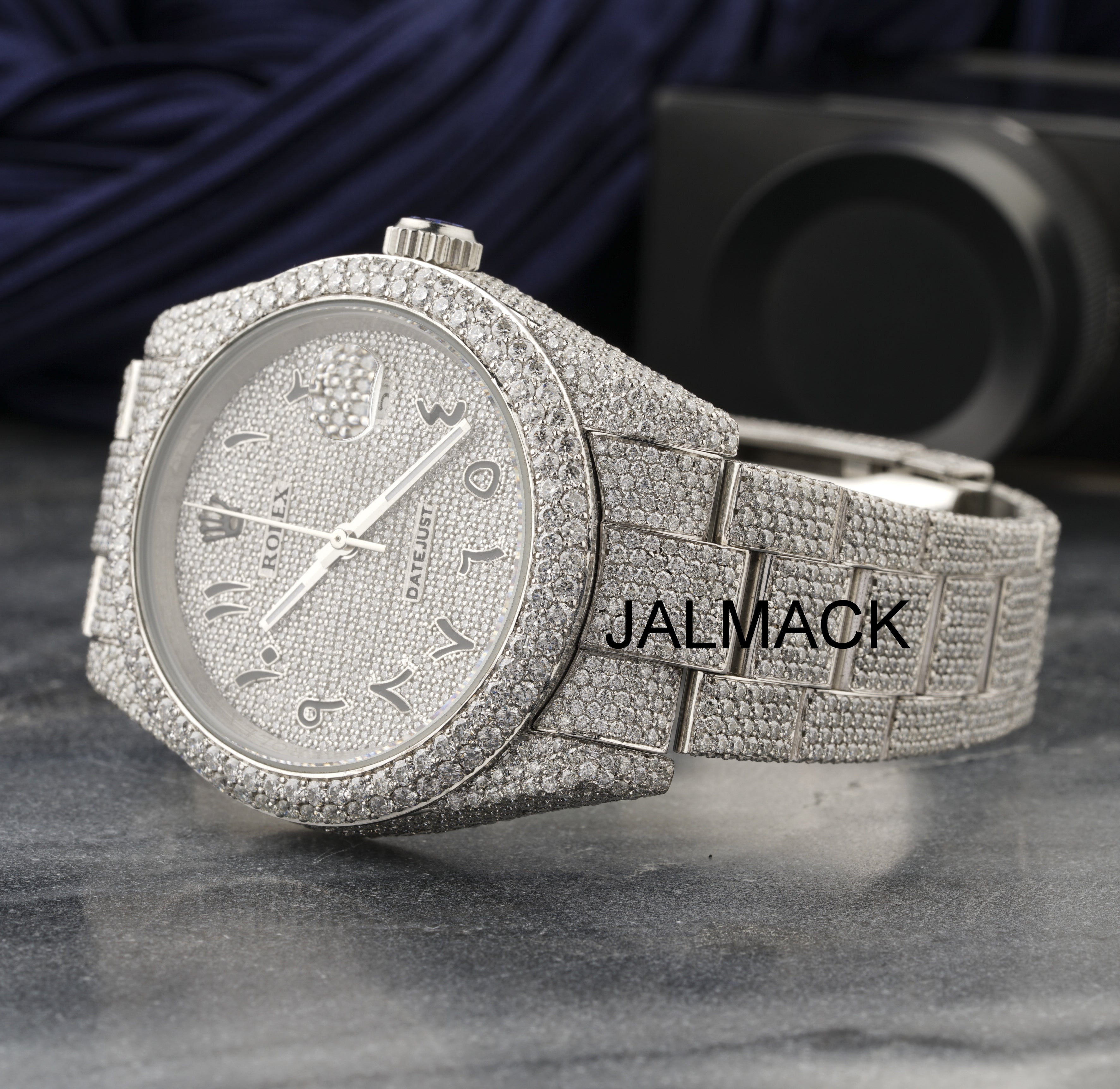 41MM Date Just Arabic full Moissanite Diamond Watch, Customized Moissanite Studded Watch