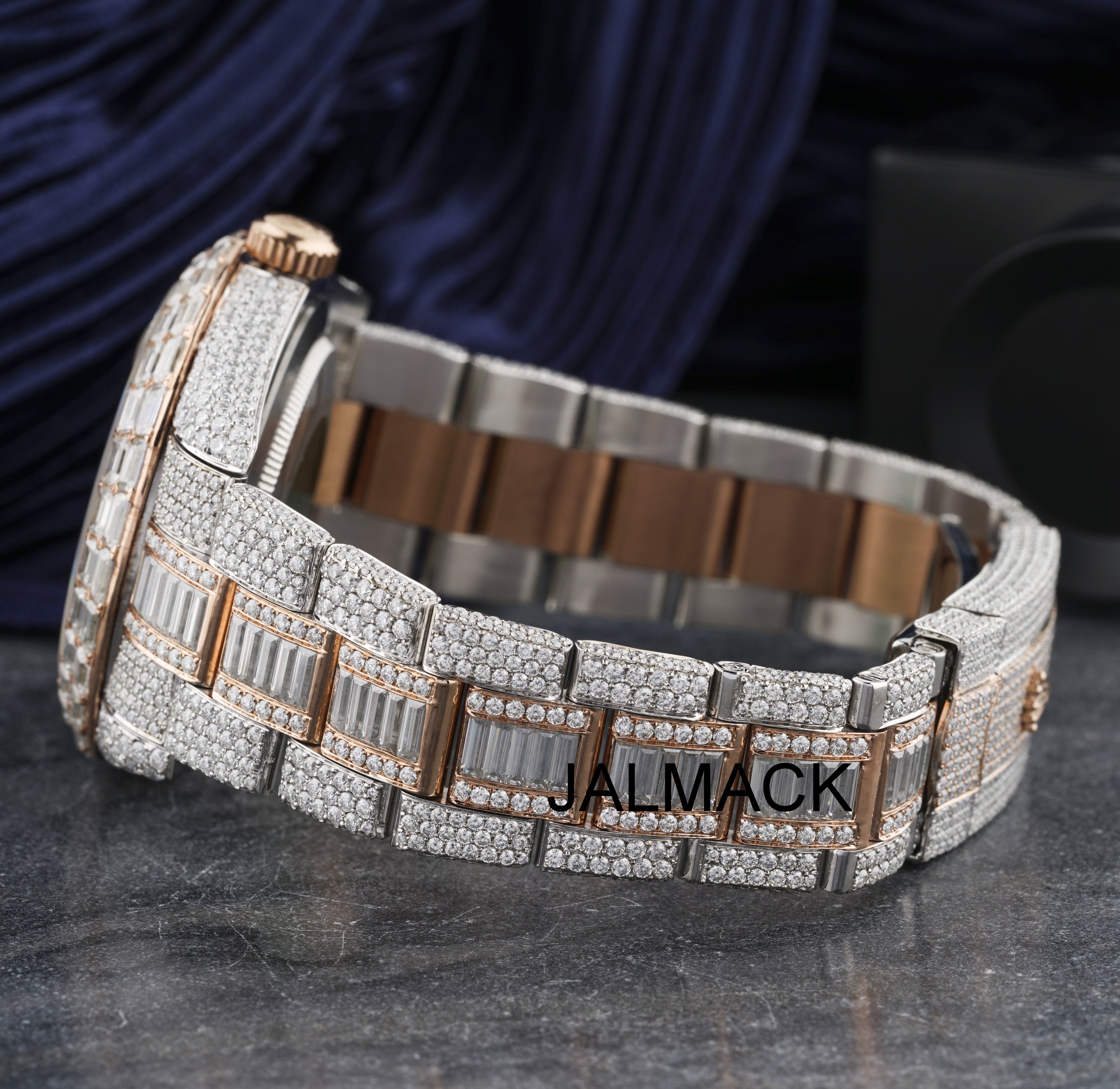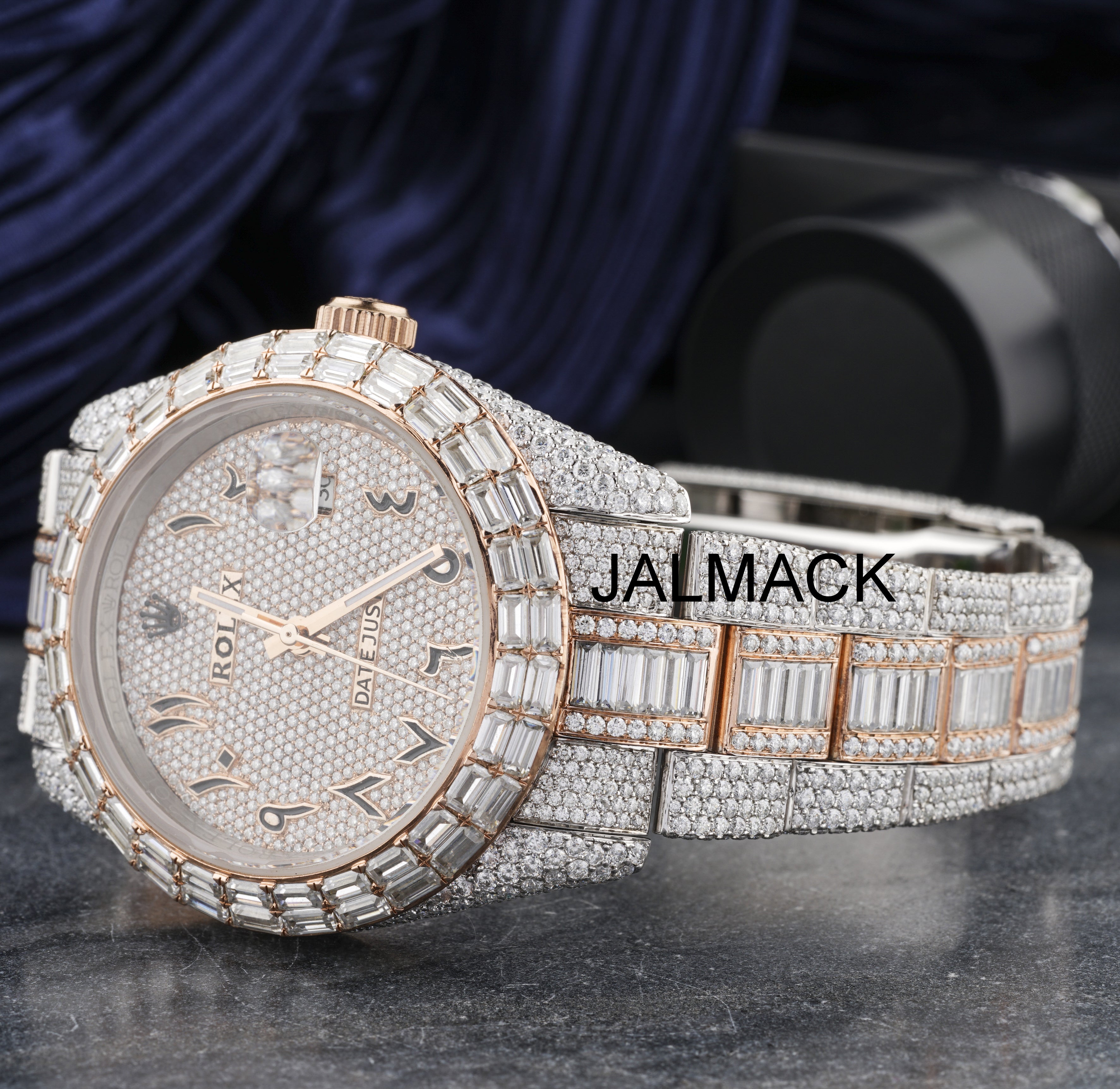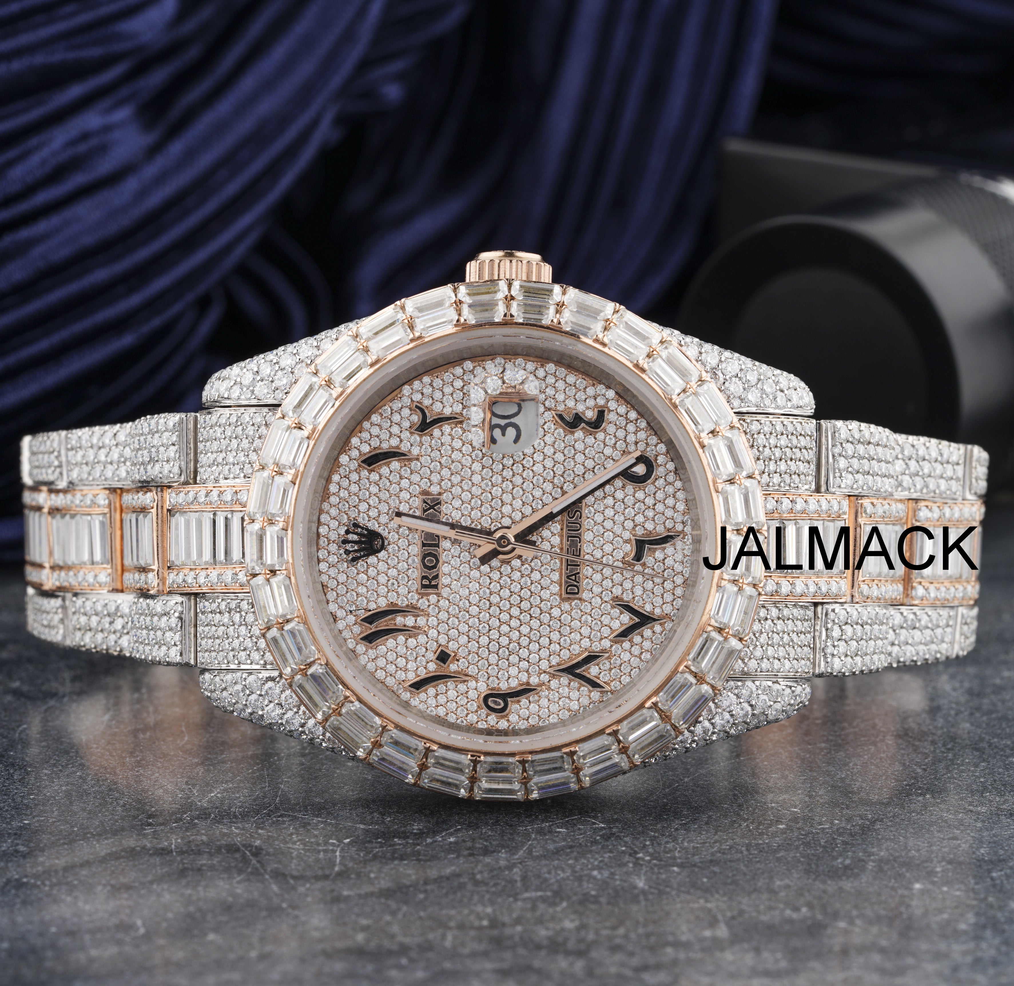 41MM Date Just Arabic full Moissanite Diamond Watch, Customized Moissanite Studded Watch
