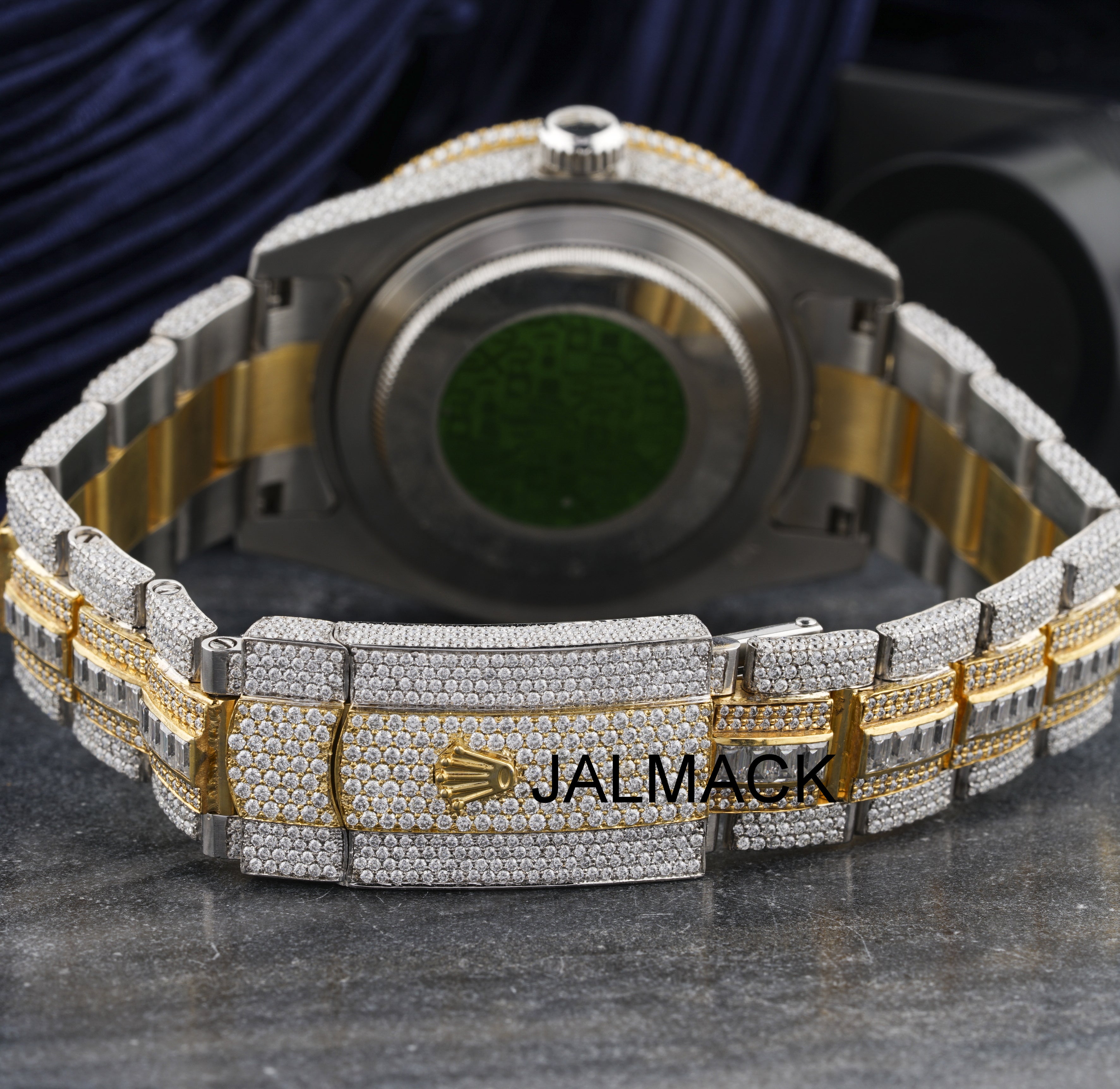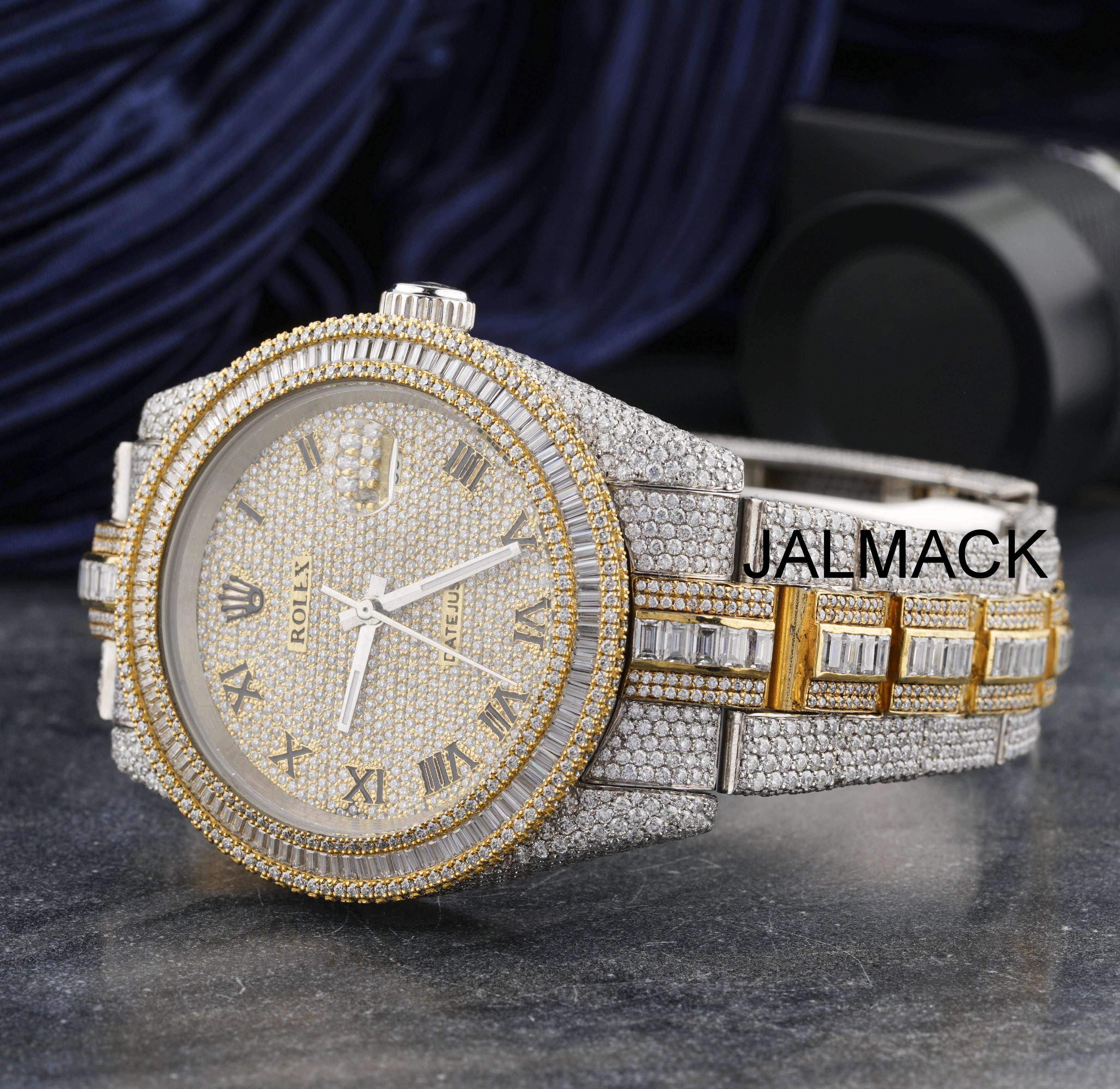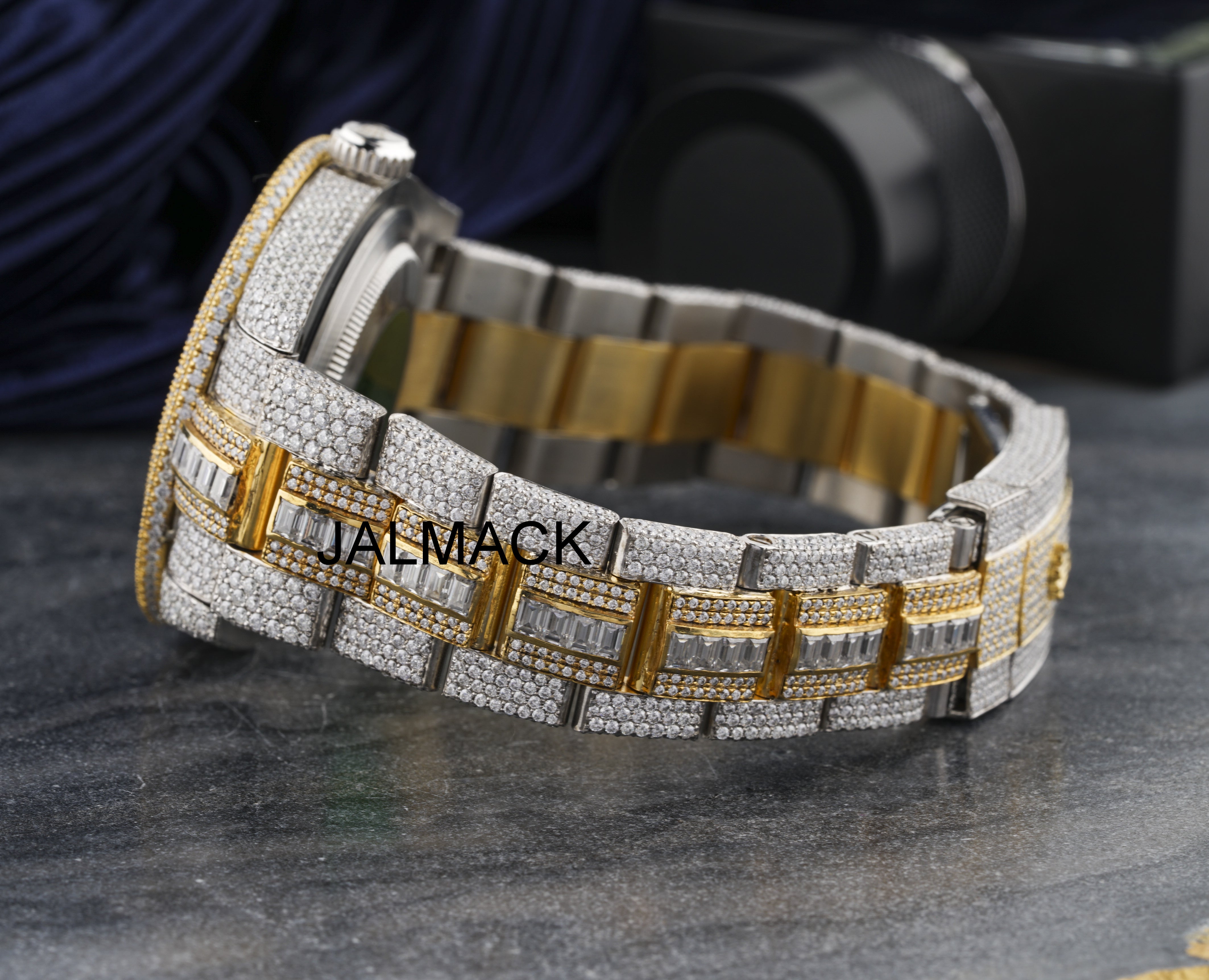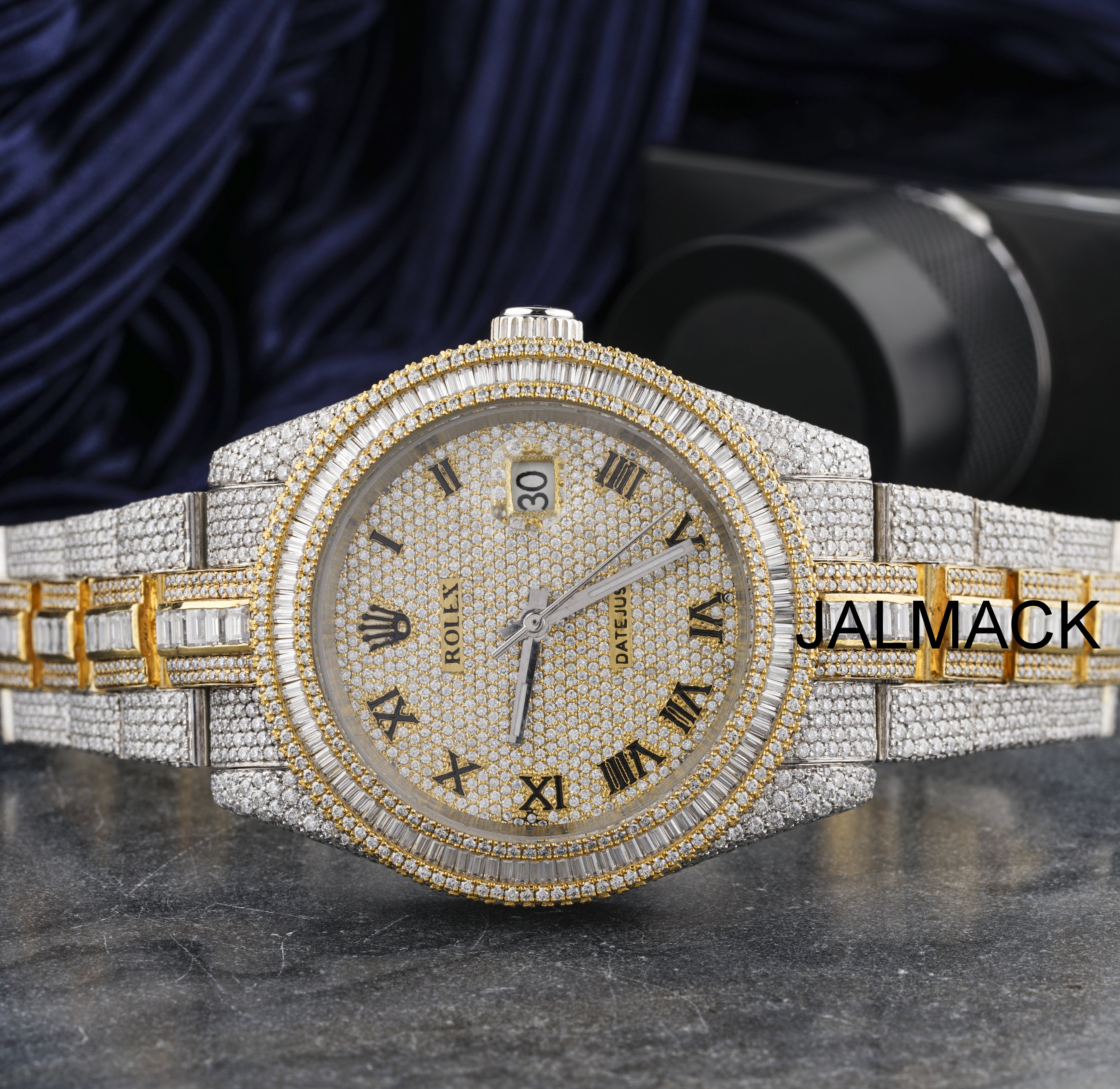 41MM Date Just Fully Iced VVS Moissanite Diamond Watch, Customized Moissanite Studded Watch