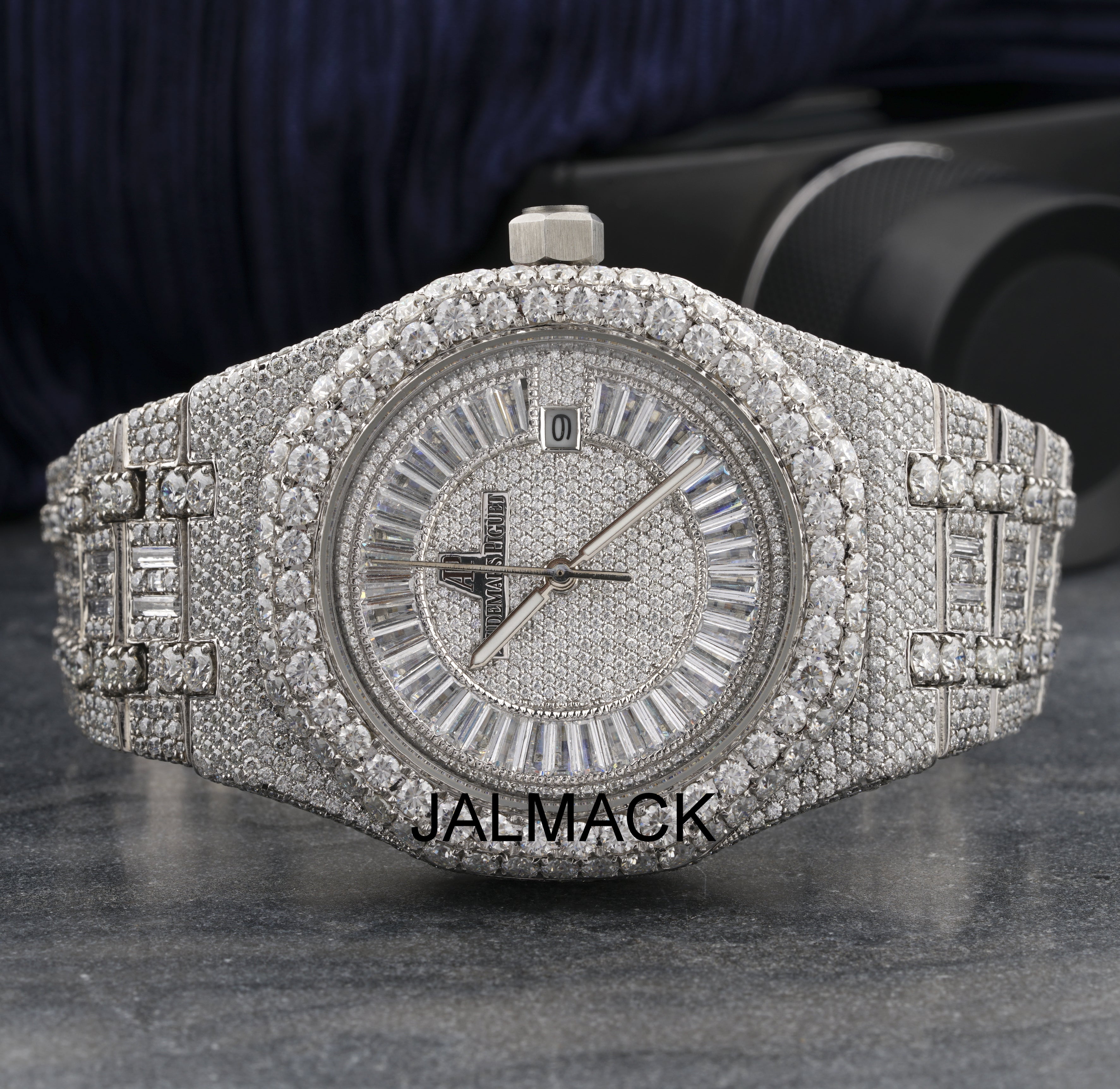 41MM Fully Iced Out VVS Moissanite Diamond Watch, Customized Moissanite Studded Watch