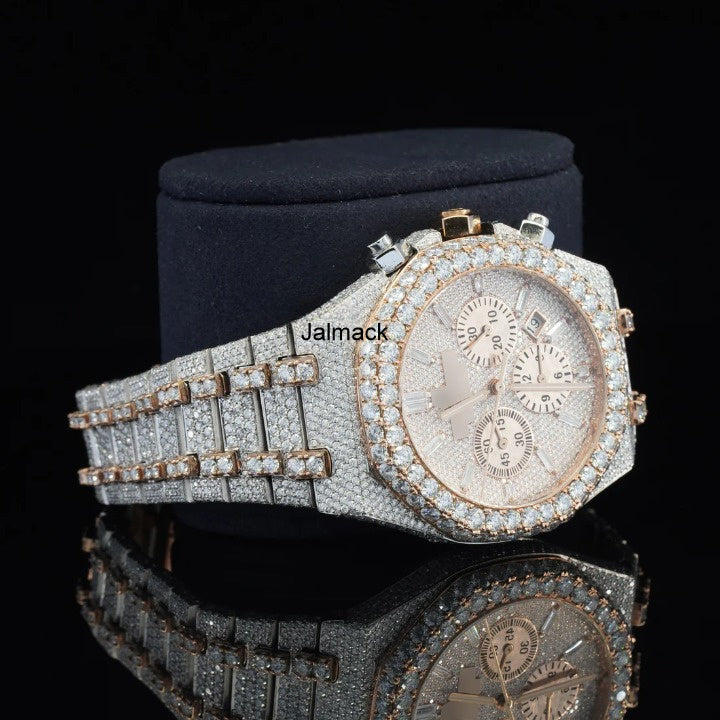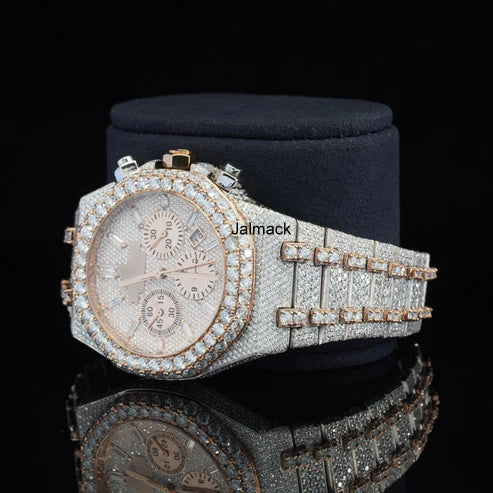 41MM Fully Iced Out VVS Moissanite Diamond Watch, Customized Moissanite Studded Watch
