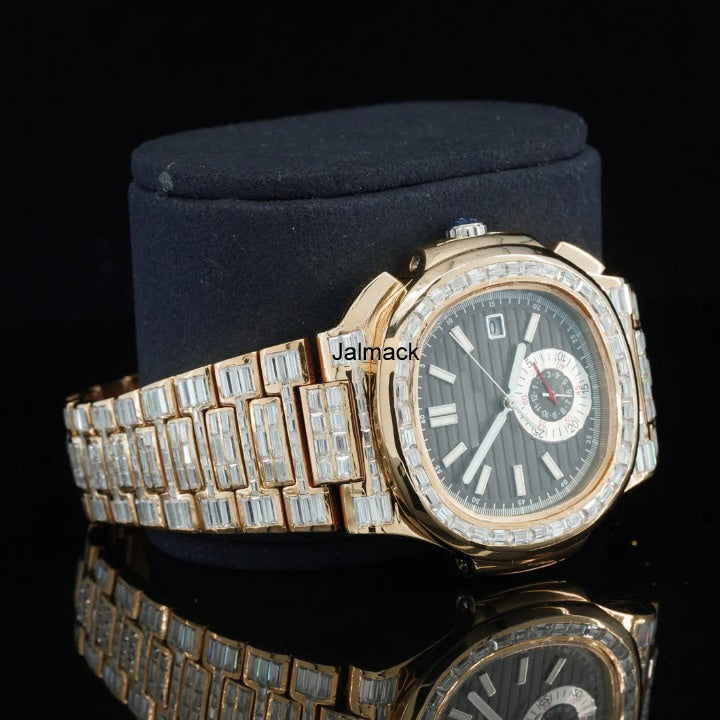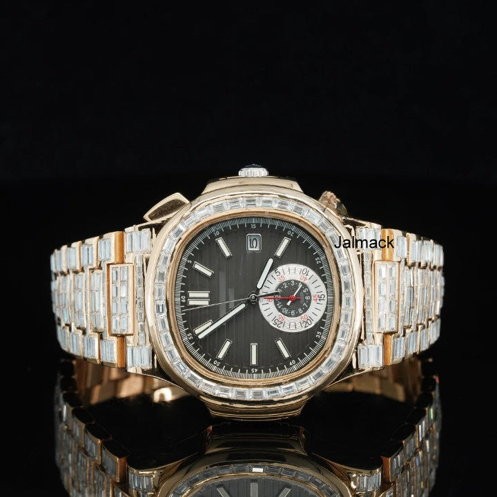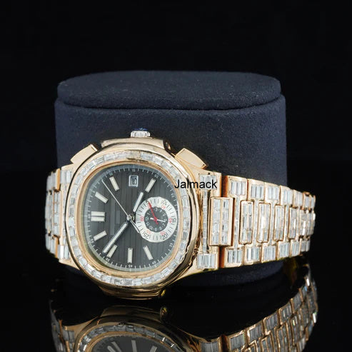 41MM Rose Gold Plated Luxury Bust Down Moissanite Diamond Automatic Watch, Customized Moissanite Studded Watch