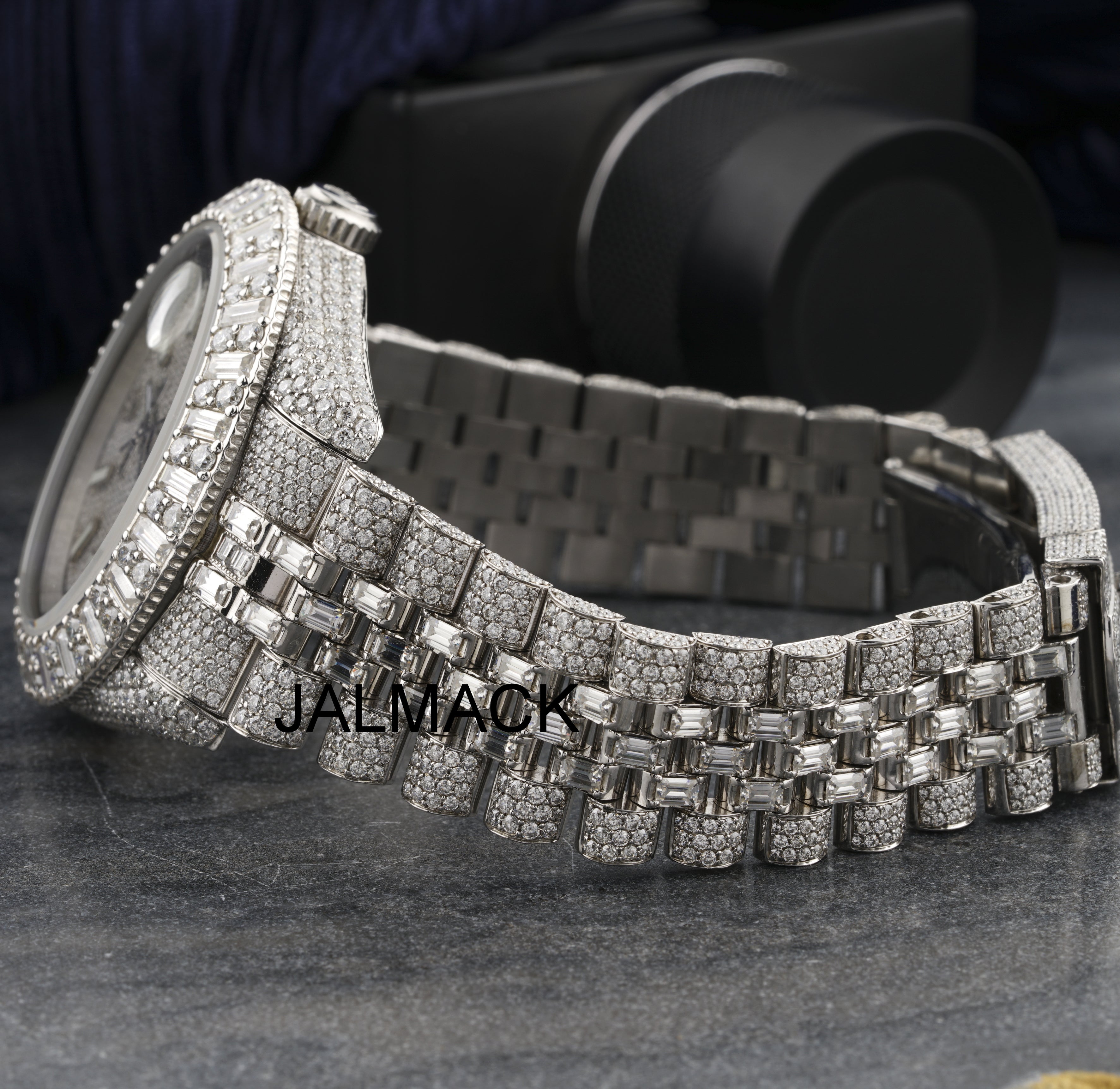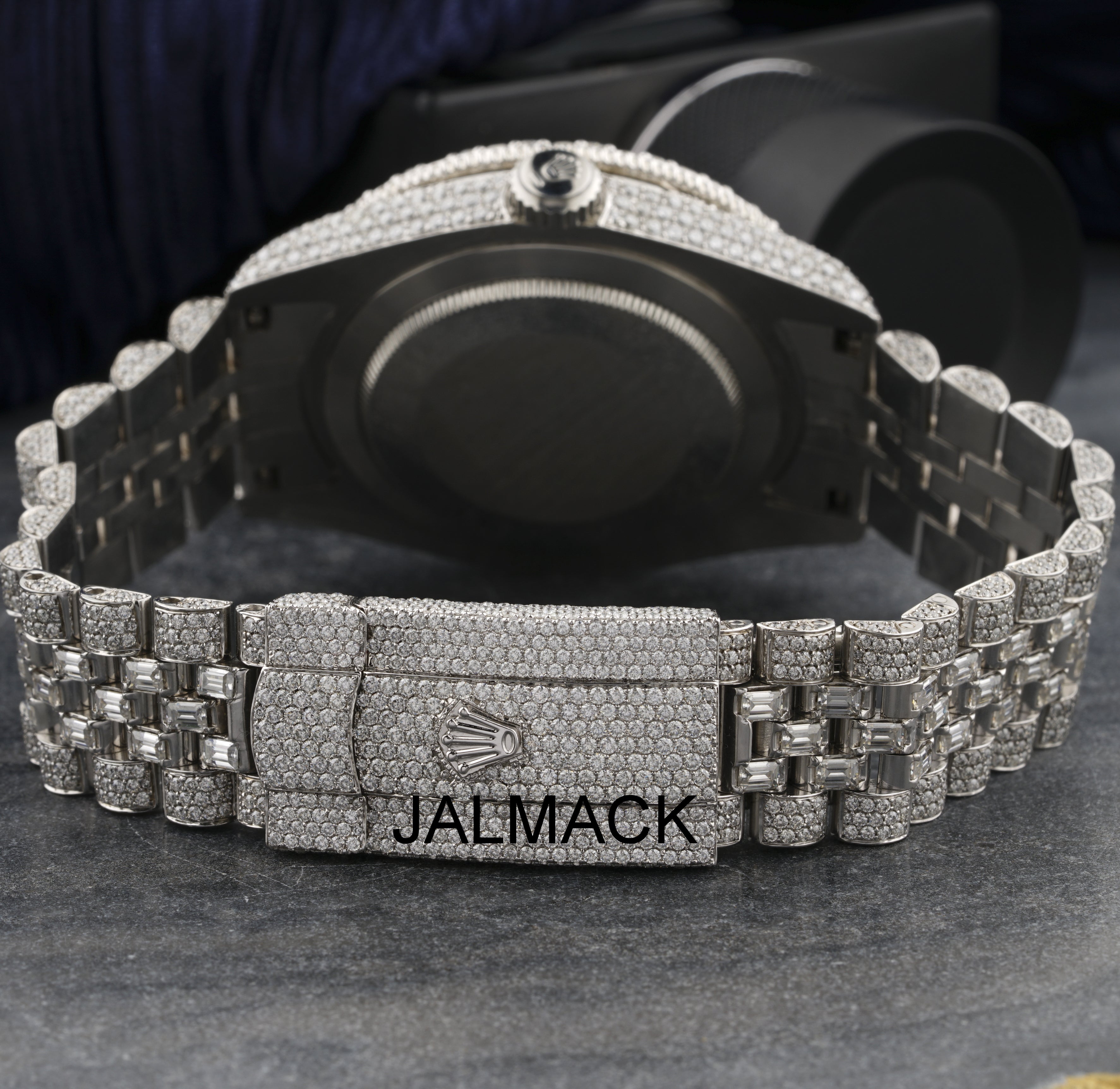 Customized Moissanite Studded Watch, 41MM Date Just fully Bust down Moissanite Diamond Watch