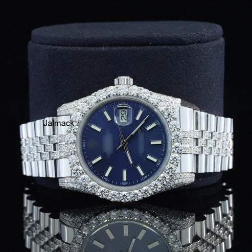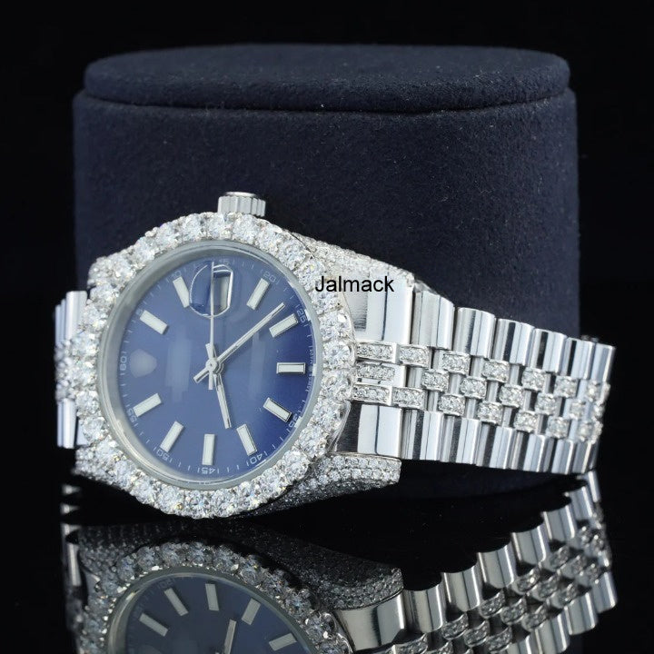Customized Moissanite Studded Watch, 41MM Date Just fully Bust down Moissanite Diamond Watch