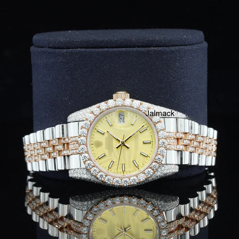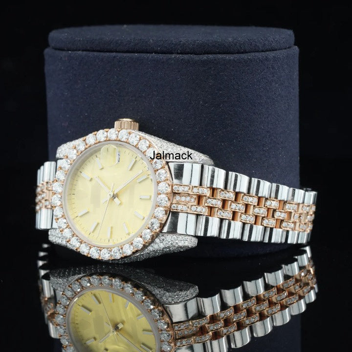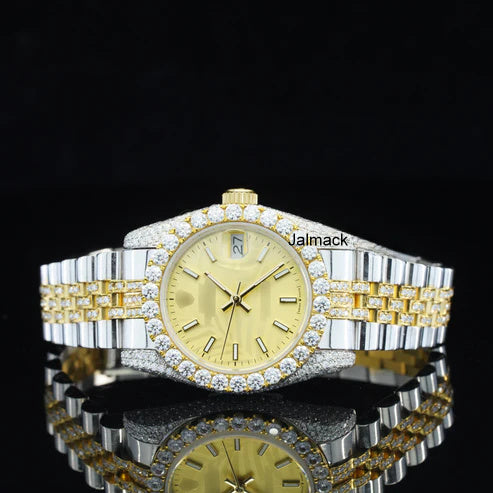 Customized Moissanite Studded Watch, 41MM Date Just fully Bust down Moissanite Diamond Watch