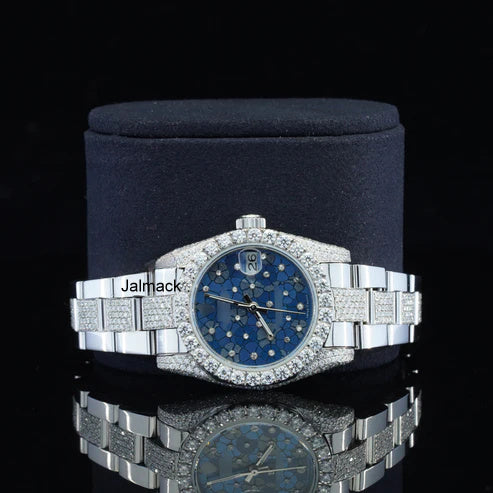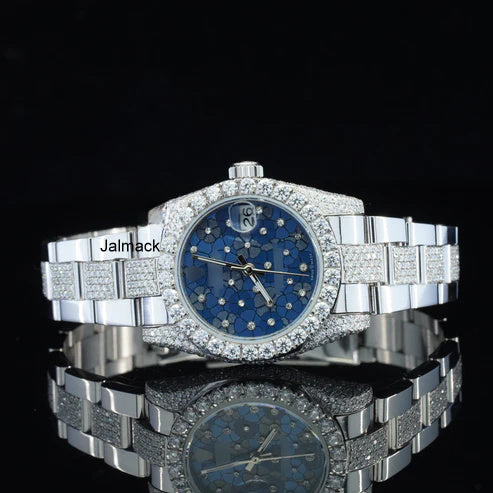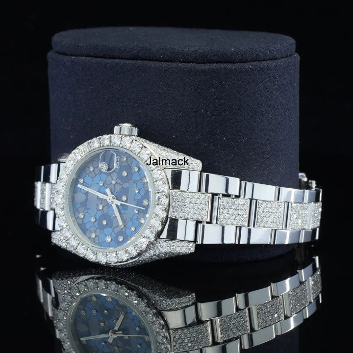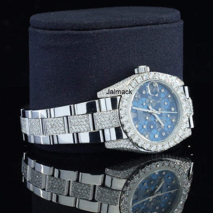 Customized Moissanite Studded Watch, 36MM Date Just fully Bust down Moissanite Diamond Watch