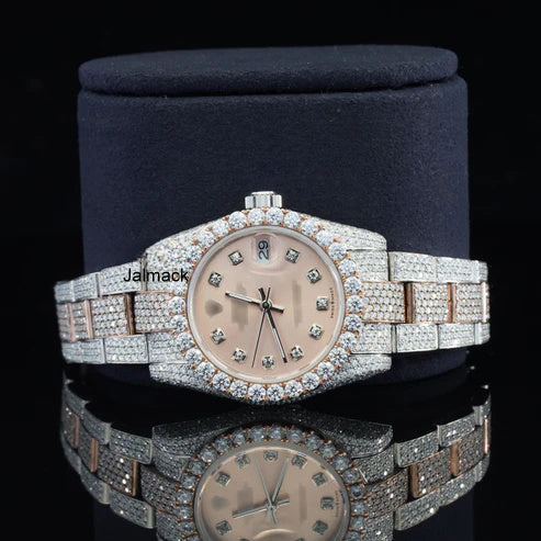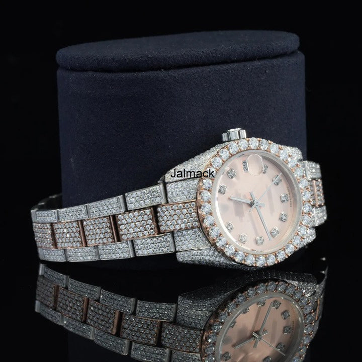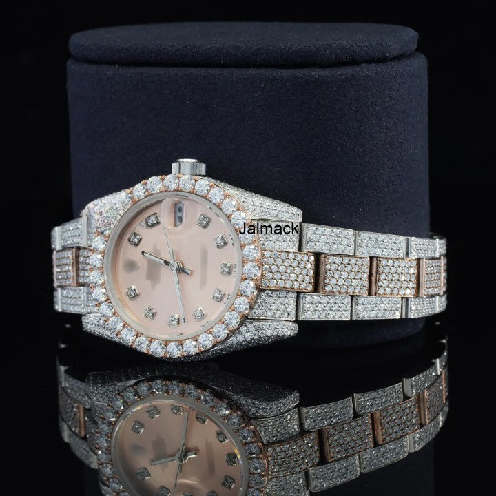 Customized Moissanite Studded Watch, 41MM Date Just fully Bust down Moissanite Diamond Watch