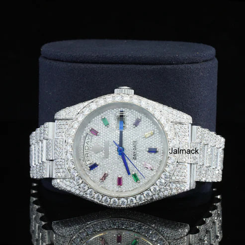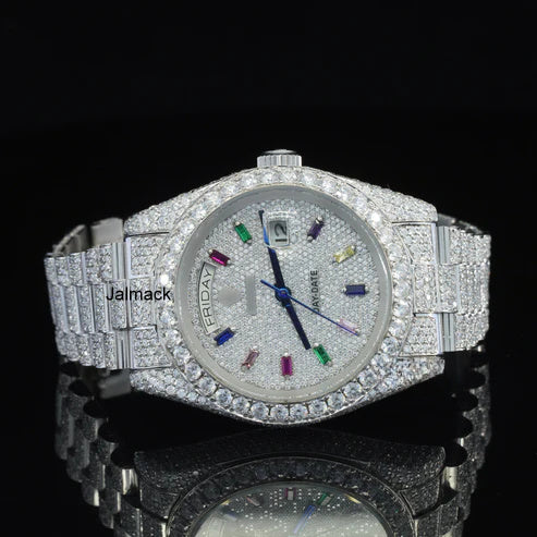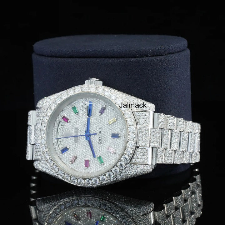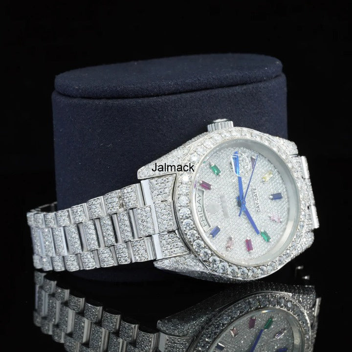 Customized Moissanite Studded Watch, 41MM Day Date fully Bust down Moissanite Diamond Watch