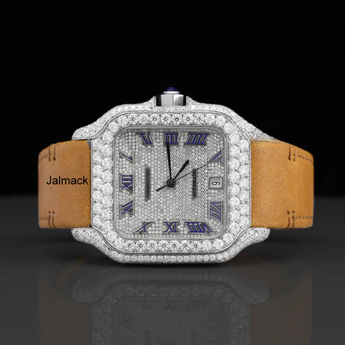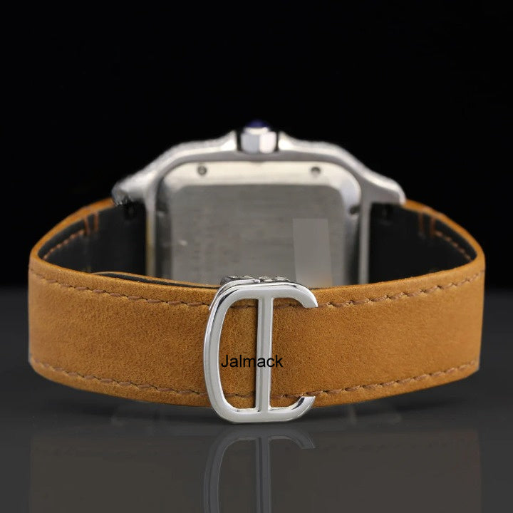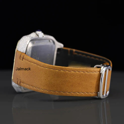 Iced out Cartier leather belt Diamond Watch, Customized Moissanite Studded leather belt Watch
