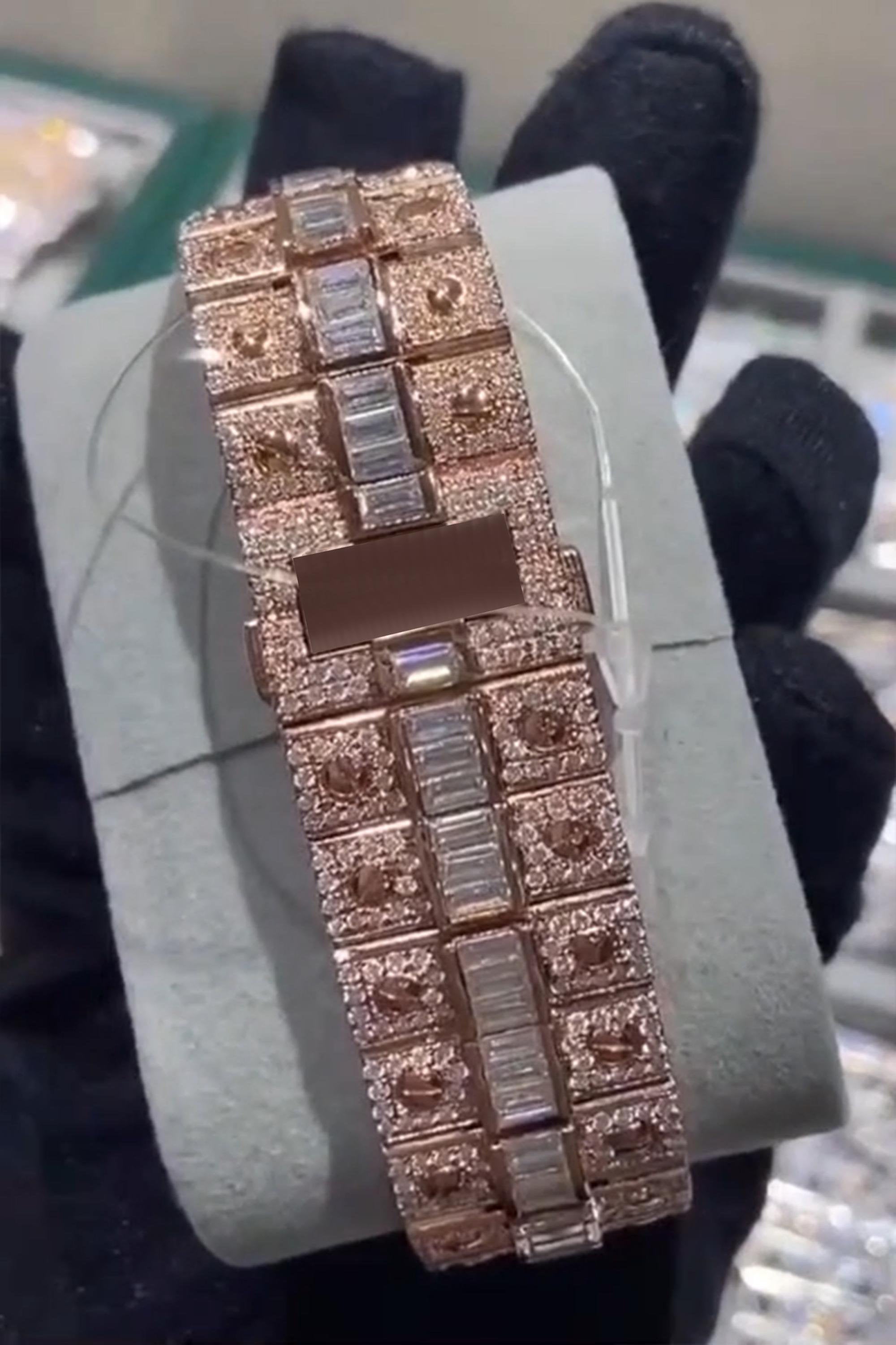 Iced Out Luxury 40MM Round & Baguette Moissanite Diamond Fully Automatic Watch for Anniversary Gift