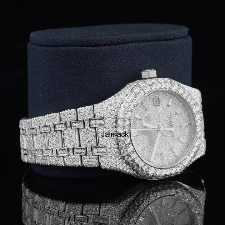 Luxury 41MM Iced Out VVS Moissanite Diamond fully Automatic Watch, Customized Moissanite Studded Watch