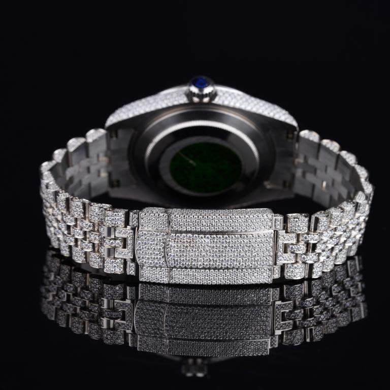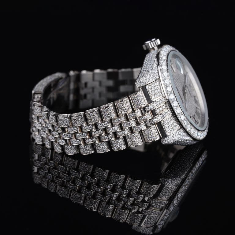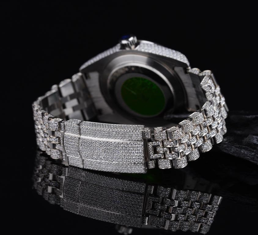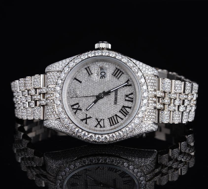 Sparkling Rolex 41MM Date Just Moissanite Diamond Watch With Roman Letter, Customized Moissanite Studded Watch