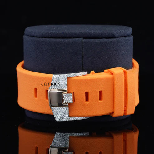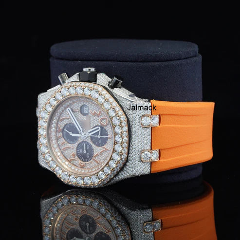 Stainless Steel Iced Out Moissanite Diamond Automatic Rubber Belt Watch, Customized Moissanite Studded Rubber belt Watch