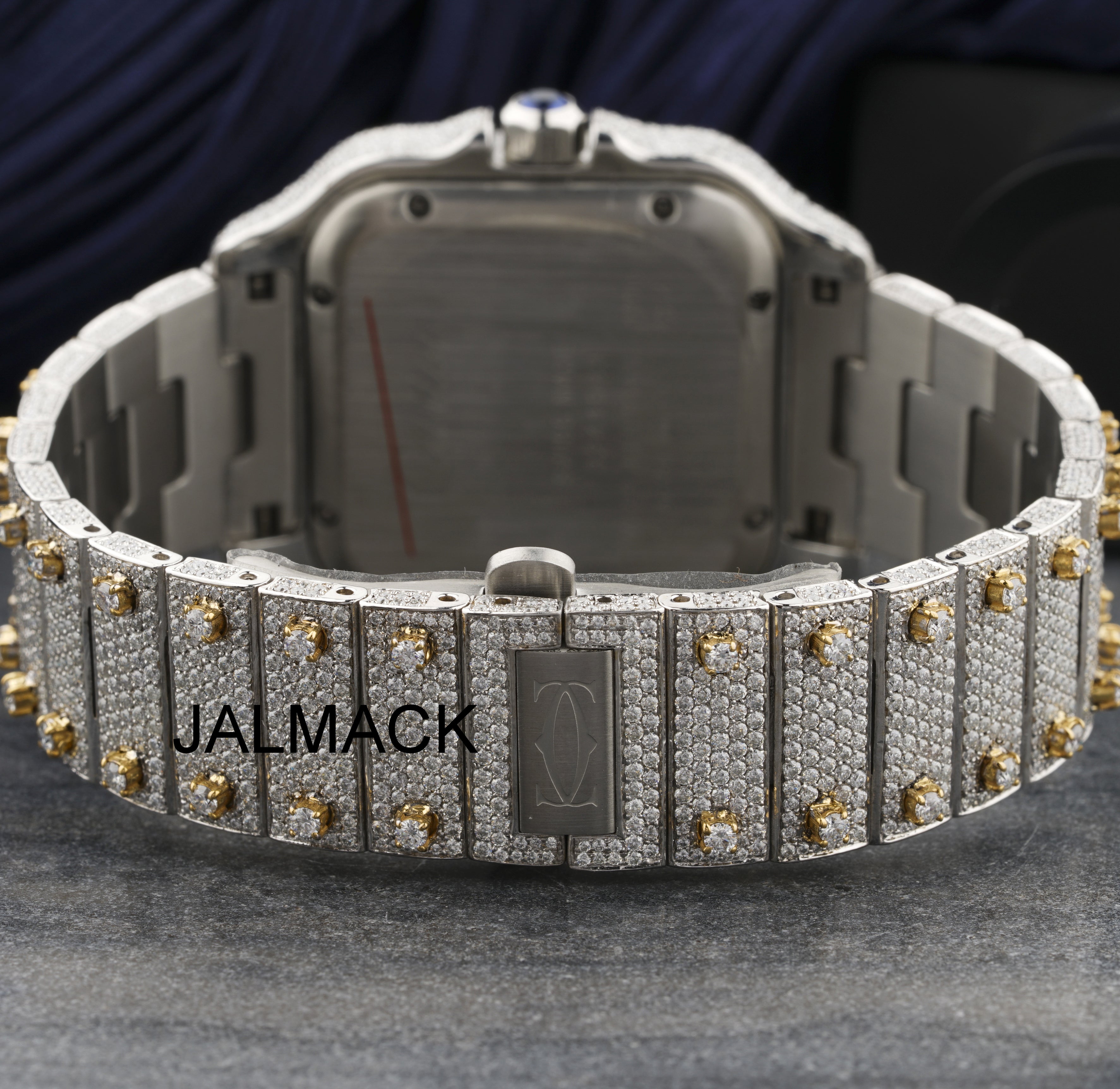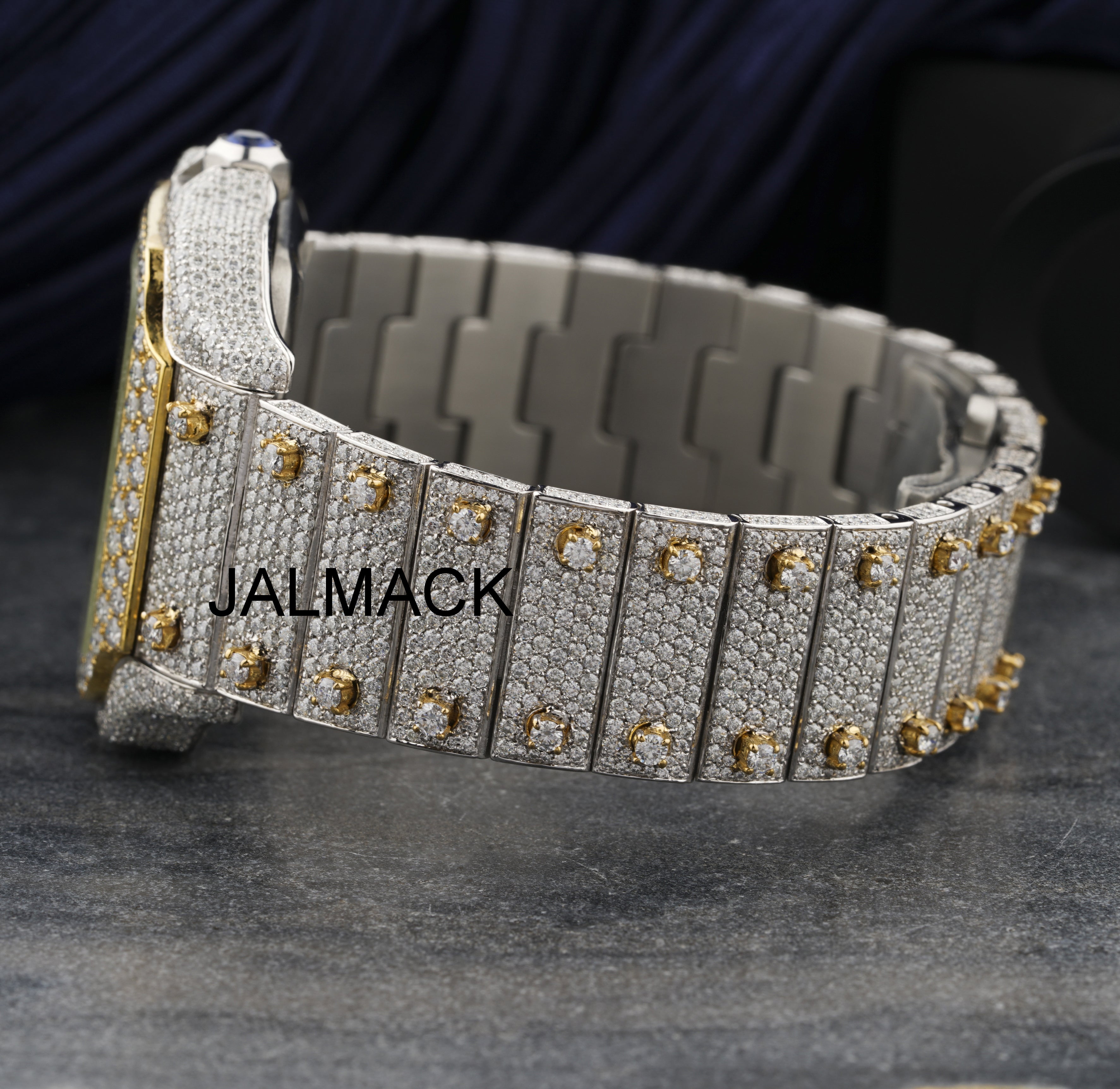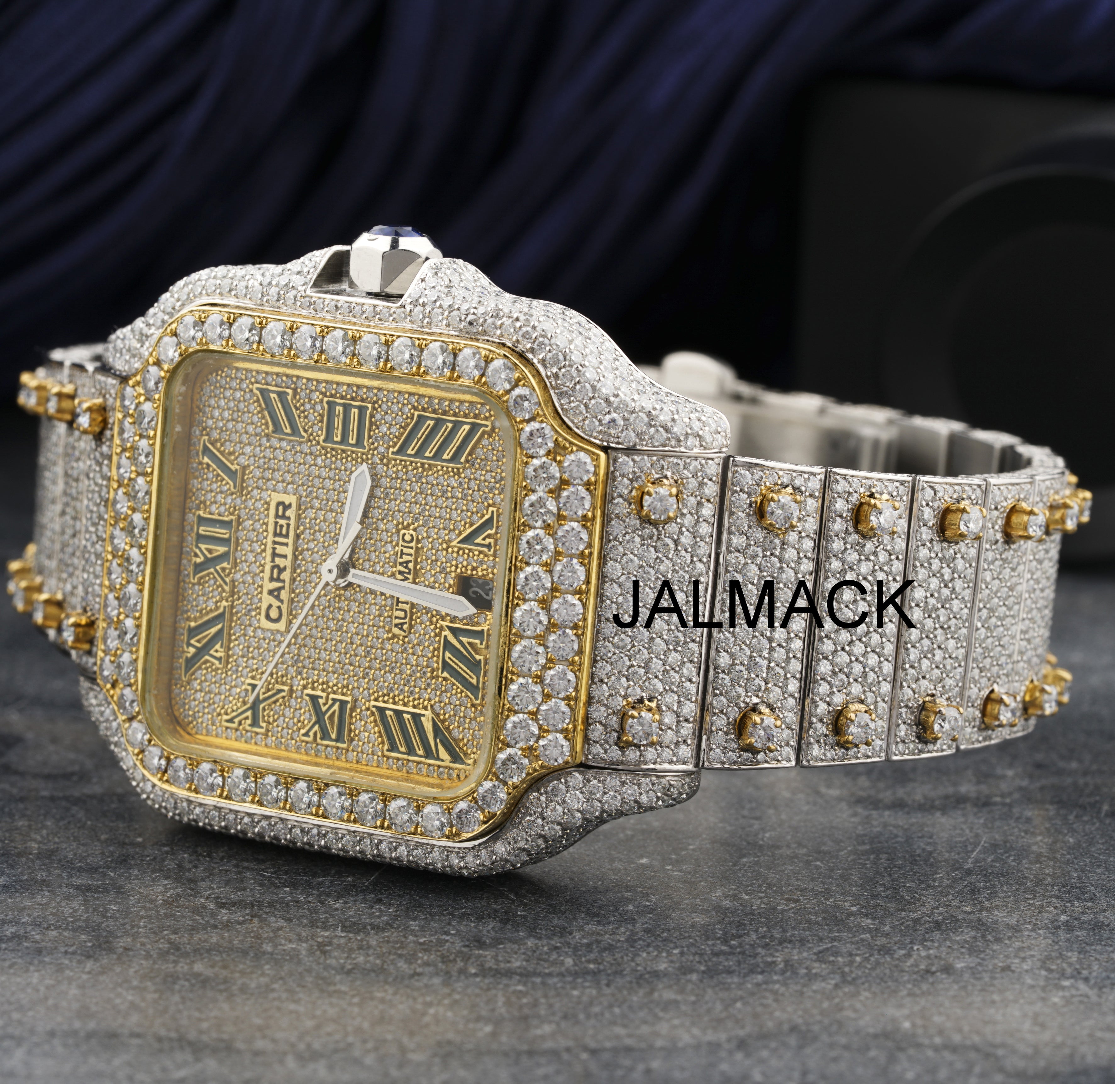 VVS Moissanite 40MM Cartier Fully Iced Out Watch, Customized Moissanite Studded Watch