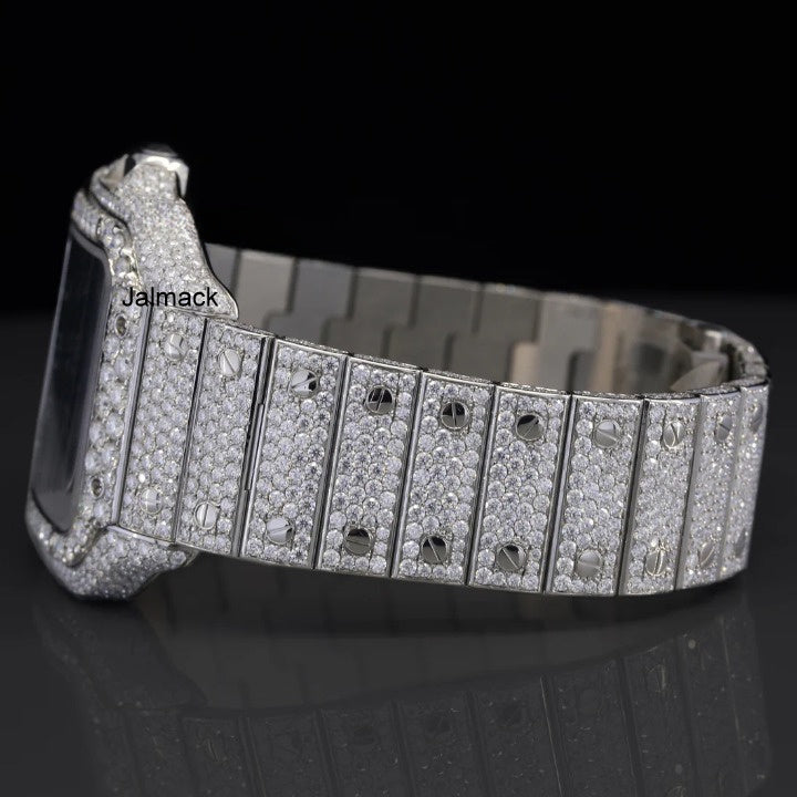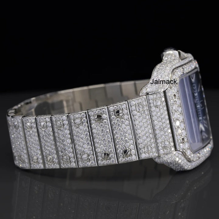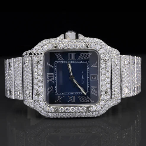 VVS1 40MM Cartier Fully Bust Down Diamond Watch, Customized Moissanite Studded Watch